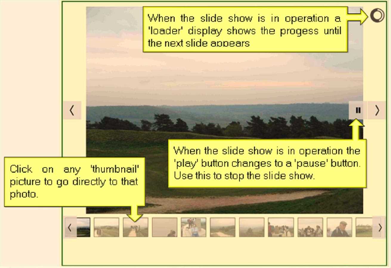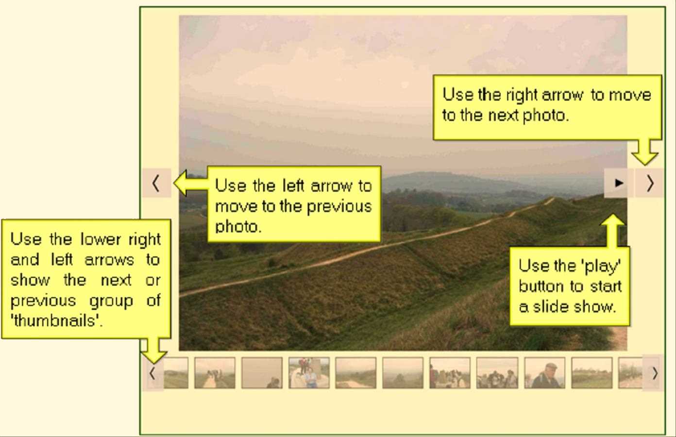 'Control' butttons will appear when you hover your mouse over a photo: